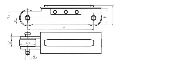 | Chain no. | Pitch P1(mm) | Diameter of roller d1(mm) | Diameter of pin d2(mm) | Inner width of inner link b1(mm) | Length of pin L(mm) | Data of sidebar | Tensile strength Q(KN) | |||