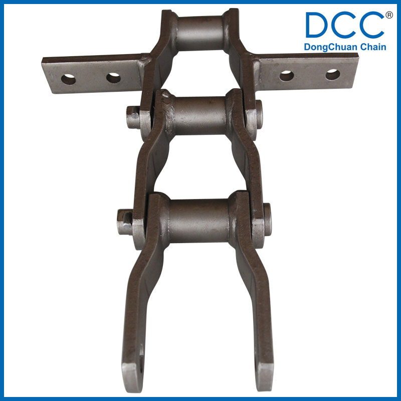 焊接彎板鏈?zhǔn)菍iT針對帶有強(qiáng)烈沖擊性、磨損性物料的輸送而設(shè)計(jì),可應(yīng)用在粉塵較大的環(huán)境,主要應(yīng)用于谷物刮板輸送、豆粕刮板輸送、工業(yè)散料輸送、木材加工等,能經(jīng)受持久磨損和高強(qiáng)度沖擊。窄系列焊接彎板鏈小端內(nèi)寬和小端外寬相對于寬系列來說都比較小,小端內(nèi)寬的大小為28MM-77.1MM,小端外寬為51mm-117.35MM,但抗拉強(qiáng)度能達(dá)到552KN。