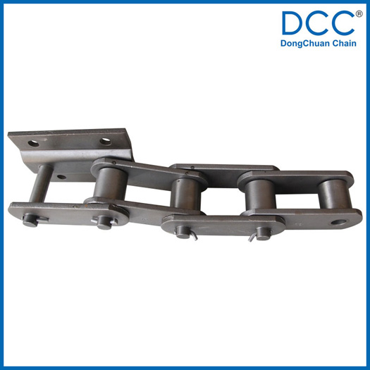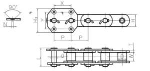 | Chain No. | Pitch P (mm) | Inner width of inner link W (mm) | Diameter of roller D (mm) | Sidebar | Pin | Dimension of attachment | Tensile strength(KN) | |||||